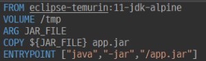 - 구글에 Spring boot docker 검색 ➡ Dockerfile 내용 복사 ➡ Dockerfile 내용 붙여넣기