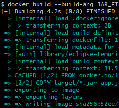 - docker build --build-arg JAR_FILE=target/*.jar -t myorg/myapp .