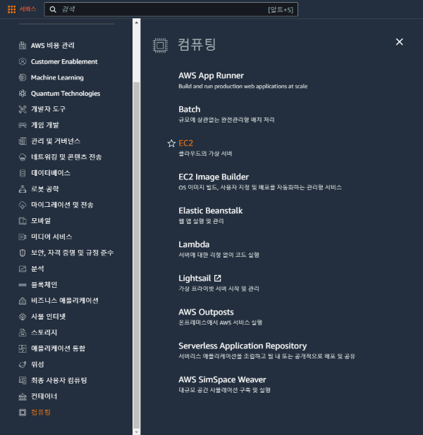 - 서비스 ➡ 컴퓨팅 ➡ EC2 클릭